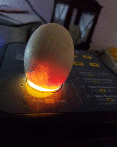 At day 14, week 2, we candled the eggs again. This time we candled every egg. Some of the eggs were very dark – like they were full – of a CHICKEN! We even got to see some feet and I’ve heard sometimes you can see their beaks too. It was insane. There were 5 eggs that looked very clear and empty. However, that mother hen came out again and I wanted to leave them in the incubator just in case I was wrong. I laugh about it now.