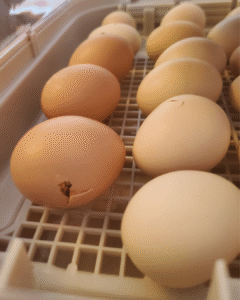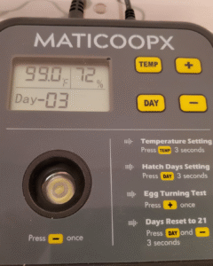 On to that 3rd week, 3 days before the hatch day, we had to “lock it down”. This is when you increase the humidity and do not open the incubator. This is the signal to the chicks that it is time to hatch. Can I pause for a moment to say how amazing a broody mama hen is? Like seriously, there isn’t anyone turning her eggs or telling her when to turn them or how far to turn them, etc. Mother nature is amazing.